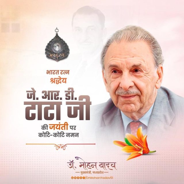 मुख्यमंत्री डॉ. यादव ने भारतरत्न जेआरडी टाटा का किया पुण्य स्मरण
