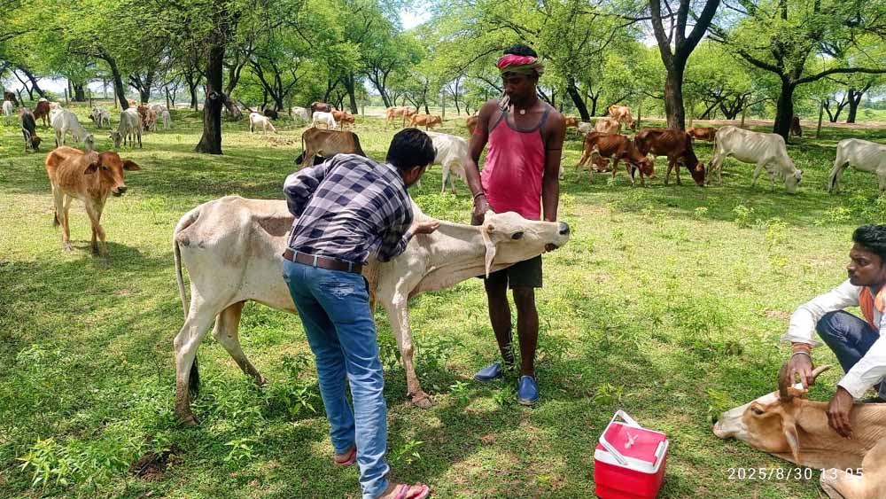 पशु चिकित्सा विभाग द्वारा पशु चिकित्सा शिविर का आयोजन कर पशुधन को लम्फी बीमारी से बचाव हेतु टीकाकरण किया गया। शिविर में पशुओं का स्वास्थ्य परीक्षण किया गया और एवं 120 लम्फी बीमारी से बचाव हेतु टीकाकरण किया गया। इसके साथ ही 30 पशुओं को कृमिनाशक दवापान, एक पशु में कृत्रिम गर्भाधान तथा 11 पशुओं हेतु औषधि वितरण किया गया।