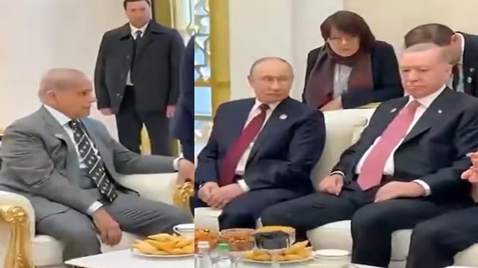तुर्कमेनिस्तान में एक अंतरराष्ट्रीय कार्यक्रम के दौरान पाकिस्तान की डिप्लोमेसी का मजाक बना है. पाकिस्तानी प्रधानमंत्री शहबाज शरीफ का रूस के राष्ट्रपति व्लादिमीर पुतिन से मिलने का कार्यक्रम था. लेकिन पुतिन उनसे मिलने नहीं आए, बल्कि 40 मिनट तक इंतजार कराया. दरअसल पुतिन तब तुर्की के राष्ट्रपति रेसेप तैयप एर्दोगन से मुलाकात कर रहे थे. पुतिन का इंतजार करते-करते आखिर शहबाज से रहा नहीं गया और आखिरकार तय प्रोटोकॉल तोड़ते हुए वह पुतिन-एर्दोगन की मीटिंग में घुस गए. इस दौरान पुतिन और एर्दोगन बातचीत कर ही रहे थे.