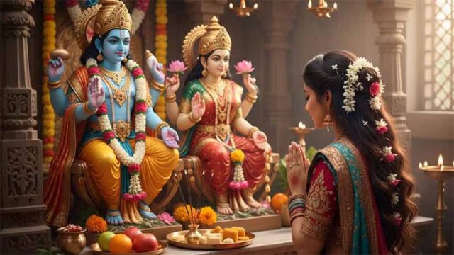 - भगवान विष्णु और मां लक्ष्मी की मूर्ति को स्थापित करें।