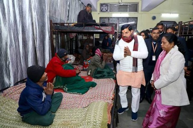 मुख्यमंत्री डॉ. मोहन यादव ने रविवार की रात भोपाल के तलैया स्थित यादगार-ए-शाहजहांनी पार्क रैन बसेरे का आकस्मिक निरीक्षण किया। उन्होंने रैन बसेरे में गरीबों, जरूरतमंद, बेसहारा और यहां रात्रि विश्राम करने आए राहगीरों से आत्मीय चर्चा की। मुख्यमंत्री ने सबके हालचाल और दु:ख-दर्द जाने एवं सभी को अपने हाथों से गर्मागर्म चाय पिलाकर सर्दी से बचाव के लिए गर्म कंबल भी वितरित किए। मुख्यमंत्री डॉ. यादव ने रैन बसेरा जाते समय सबसे पहले पुलिस मुख्यालय के सामने लाल परेड ग्राउंड के गेट नम्बर 4 शौर्य द्वार में उपस्थित महिलाओं और बुर्जुगों से बात की, उनकी कुशलक्षेम जानी और सभी को कंबल वितरित किए। इसके बाद मुख्यमंत्री डॉ. यादव तलैया स्थित काली मंदिर पहुंचे और वहां बड़ी संख्या में उपस्थित सभी गरीबों और जरूरतमंदों को भी कंबल वितरित किए। मुख्यमंत्री द्वारा पूछने पर एक जरूरतमंद ने बताया कि वह सब्जी बेचने भोपाल आए थे, सर्दी भी तेज है और रात भी हो गई है, तो अब वे इसी मंदिर परिसर में रात बिताएंगे। कुछ ने बताया कि वे किसी जरूरी काम से आए थे, सिर्फ रात बिताने के लिए उन्होंने काली मंदिर परिसर में शरण ली है।