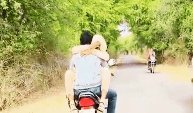Home मध्य प्रदेश बाइक पर गर्लफ्रेंड-बॉयफ्रेंड का खतरनाक स्टंट, ट्रैफिक नियमों की उड़ी धज्जियां