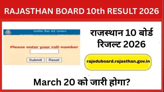 सूत्रों की मानें तो राजस्थान माध्यमिक शिक्षा बोर्ड 20 मार्च 2026 को दोपहर तक रिजल्ट की घोषणा कर सकता है. रिजल्ट जारी होने के बाद छात्र बोर्ड की आधिकारिक वेबसाइट rajeduboard.rajasthan.gov.in पर अपना स्कोरकार्ड देख सकेंगे।